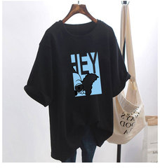 香港風シンプルなプリントとゆったり半袖Tシャツ夏の丸首に半袖5分袖Tシャツ
