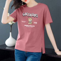 純綿6つの色の大きいサイズの丸首を切ります。半袖Tシャツ女性カジュアル百合上着の女性。
