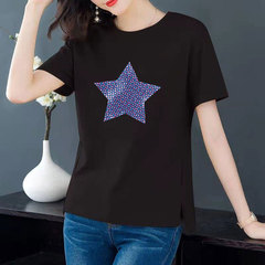 純綿6つの色の大きいサイズの丸首を切ります。半袖Tシャツ女性カジュアル百合上着の女性。